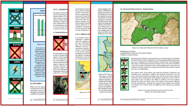 While the main chapters do contain a summary of these wargames, this tier is accompanied by an additional full sequential play-by-play analysis outlining the movements, decision cycles, hit ratios, and strategic intent of the participating blue and red force teams. This product being designed to inform contingency planning, training simulations, and regional conflict forecasting, incorporating scenario-based insights derived from current ORBAT data and terrain analysis. For an additional fee, the Oxus Society, under the direction of Michael Hilliard, can also facilitate customised similar wargaming exercises for your agency personnel or designated participants as well. If requested, these additional sessions with your team can also be tailored to specific operational scenarios, regional contingencies, or strategic planning requirements, and may be conducted in-person or via secure virtual platforms.